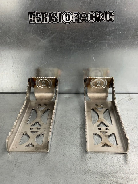 These are a direct bolt on stainless footpeg that gives you more grip and stability over the factory aluminum pegs.